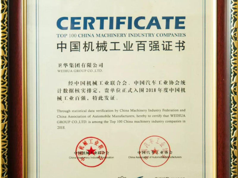 Weihua Ranks 31th of China Top 100 Machinery Enterprise