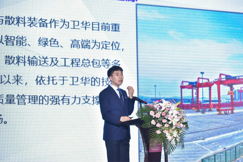 Hou Wensheng, General Manager of the Port Machinery and Bulk Equipment Division of Weihua Co., Ltd., delivered a strategic development report on port machinery products