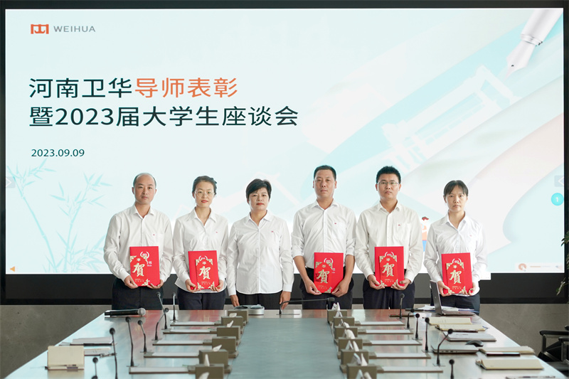 In order to speed up the company's talent training and team building, create a learning organizational culture of "respecting teachers and valuing teaching", and helping new employees recruited by the school to adapt to their roles as quickly as possible, integrate into the team and be competent for their jobs, on September 9, Henan Weihua held a mentor recognition and 2023 college student symposium. Xie Baohua, CEO of Henan Weihua, Ma Huiyan, Group Vice President, representatives of commended outstanding tutors from each center and new college students attended the meeting.