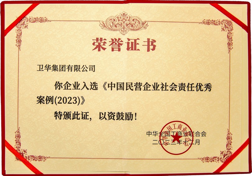 Recently, the All-China Federation of Industry and Commerce released the "Social Responsibility Report of China's Private Enterprises (2023)", and Weihua Group was selected into the list of "Excellent Cases of Social Responsibility of China's Private Enterprises (2023)". A total of 50 private enterprises across the country were selected.