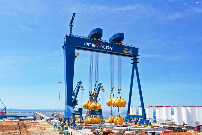 Recently, Weihua's 2,000-ton orbital gantry crane was successfully delivered at the Lufeng Marine Engineering Base, the largest offshore wind power home port in China, which not only refreshed Weihua's super-large product innovation and R&D capabilities in the field of offshore wind power, but also boosted the vigorous development of my country's offshore wind power industry, promoted the transformation of the local energy structure into a low-carbon, green, and clean one, and contributed Weihua's strength to the goal of "carbon peaking and carbon neutrality."