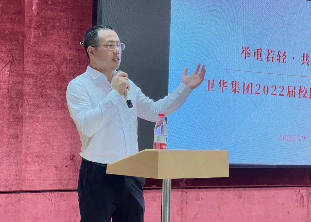 Han Hongan, chairman of Weihua Group, wrote a poem to pay tribute to Wuhan University of Technology, shared his insights on the international situation and the rise of the nation with the student representatives present, and elaborated on the development history and future plans of Weihua Group.
