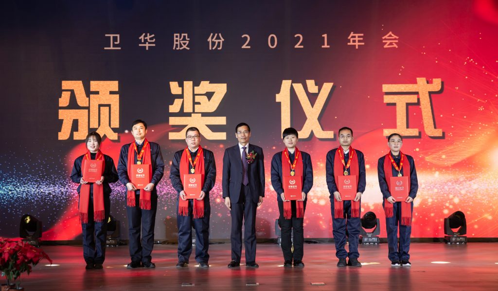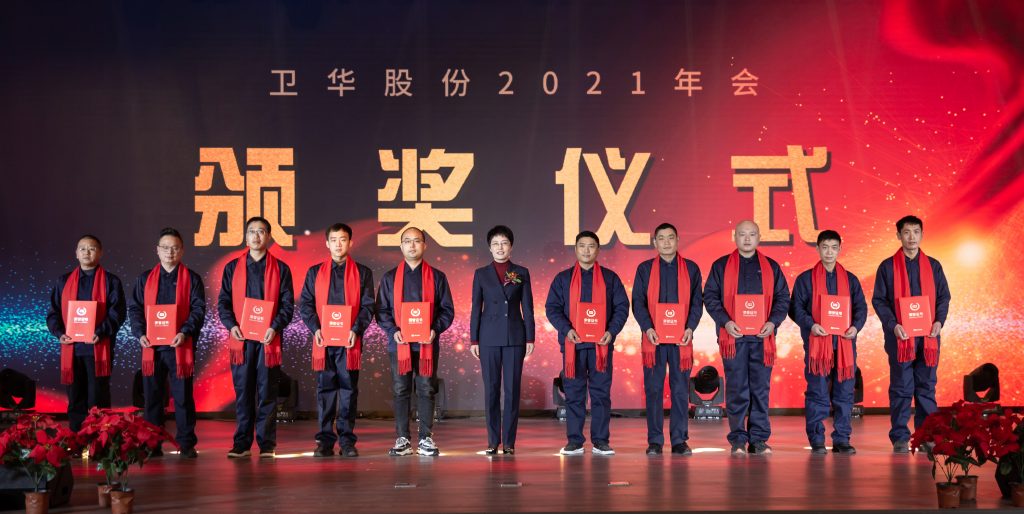 Liu Feng, a model worker of Weihua Co., Ltd., and Li Miaomiao, winner of the Model Award, made typical speeches respectively. The annual meeting ended successfully with "Song of Weihua". A total of 40 people from the Group and its subsidiaries at director level and above, as well as commended employees, attended the meeting at the main venue. A total of 15 branch venues from each subsidiary and foreign project teams participated in the "cloud" annual meeting in the form of a live webcast.