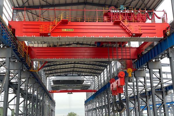 This 320t overhead crane is the biggest metallurgical foundry crane ever made in Henan Province, China. Main structure of the 320t foundry crane is with 4 girders and 6 rails.