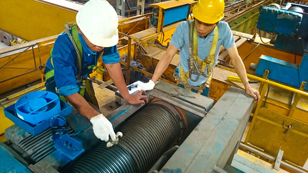 Wire rope replacement: Check wire breakage and wear, and replace wire rope with a safety factor.