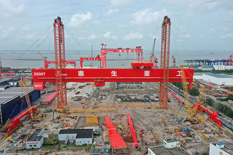 The largest tonnage shipbuilding gantry crane in China jointly manufactured by Weihua has been upgra