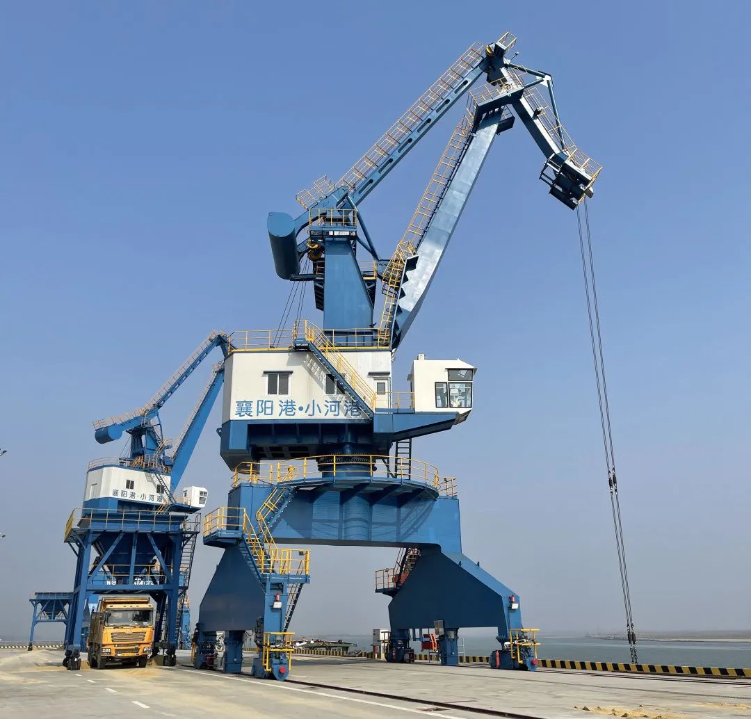 Since ancient times, Xiangyang has been known as the “Southern Ship and North Horse, the thoroughfare of seven provinces”. As the core port area of Xiangyang Port, Xiaohe Port has significant geographical location and transportation advantages, providing strong support for Xiangyang City, Hubei Province to adjust its transportation structure, reduce logistics costs, and improve comprehensive transportation capabilities. According to Weihua Regional Deputy General Manager Gao Jingbang, the Xiaohe Port Comprehensive Terminal plans to build a total of 21 berths with a designed annual throughput capacity of 15.1 million tons, mainly breakbulk cargo, bulk cargo (including sand and gravel), and containers. The entire port area occupies a coastline length of 2,495 meters and a land area of 1.36 million square meters. At present, the first phase of the Xiaohe Port Comprehensive Terminal has been completed for nearly three months, and the overall operation is smooth. Four general cargo berths and three bulk cargo operation lines are simultaneously operating at full capacity. As of February 25, the port has completed a cumulative cargo throughput of 60,500 tons and a container throughput of 106TEU. In this project and the subsequent second phase of construction, the customer chose the Weihua brand for its lifting and bulk material conveying equipment, which includes Weihua
