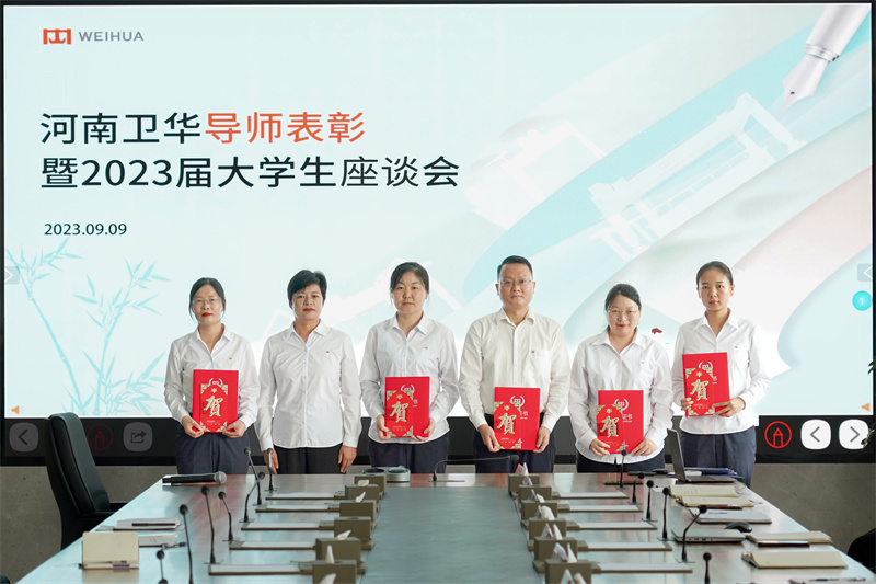 In order to speed up the company's talent training and team building, create a learning organizational culture of "respecting teachers and valuing teaching", and helping new employees recruited by the school to adapt to their roles as quickly as possible, integrate into the team and be competent for their jobs, on September 9, Henan Weihua held a mentor recognition and 2023 college student symposium. Xie Baohua, CEO of Henan Weihua, Ma Huiyan, Group Vice President, representatives of commended outstanding tutors from each center and new college students attended the meeting.