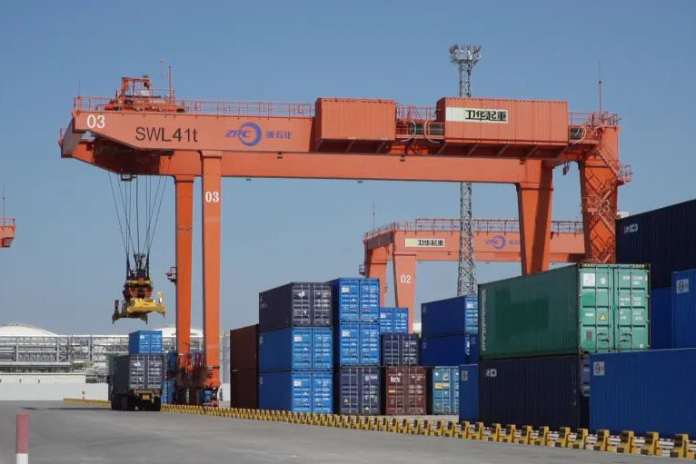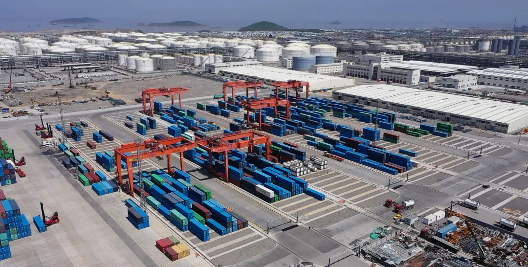 Zhejiang Petrochemical Zhoushan Green Petrochemical BaseThis project is invested and constructed by Zhejiang Petrochemical as the main body, with a total investment of approximately 200 billion yuan. It is the largest investment project by a private enterprise in China to date, and is also the largest single industry project with the largest investment scale in the world. It is an important support for the Zhoushan area of Zhejiang Free Trade Zone to build a full industry chain of oil products and implement the "three bases and one center" development strategy. Container trucks at the 40-million-ton refining and chemical project of Zhejiang Petroleum & Chemical Corporation located on Yushan Island in Zhoushan, Zhejiang Province are moving in an orderly manner in the Weihua intelligent storage yard.