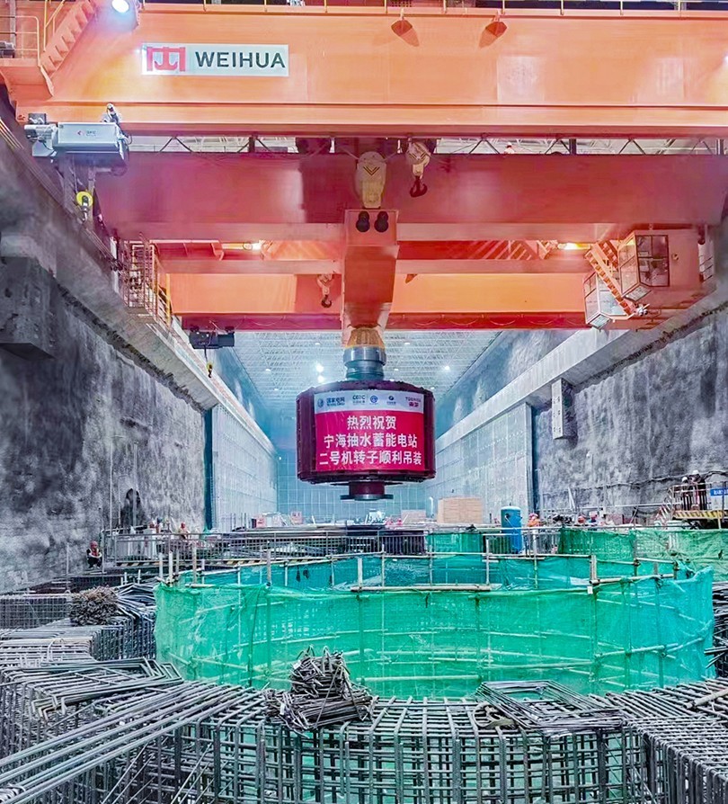 In the construction process of the pumped storage power station, the installation of the generator rotor is a key node of the project. Weihua cranes can always fulfill their mission and successfully complete the hoisting task, laying a solid foundation for the smooth commissioning of the power station and contributing Weihua's strength to help the country build a clean energy system and better achieve the goals of carbon peaking and carbon neutrality.